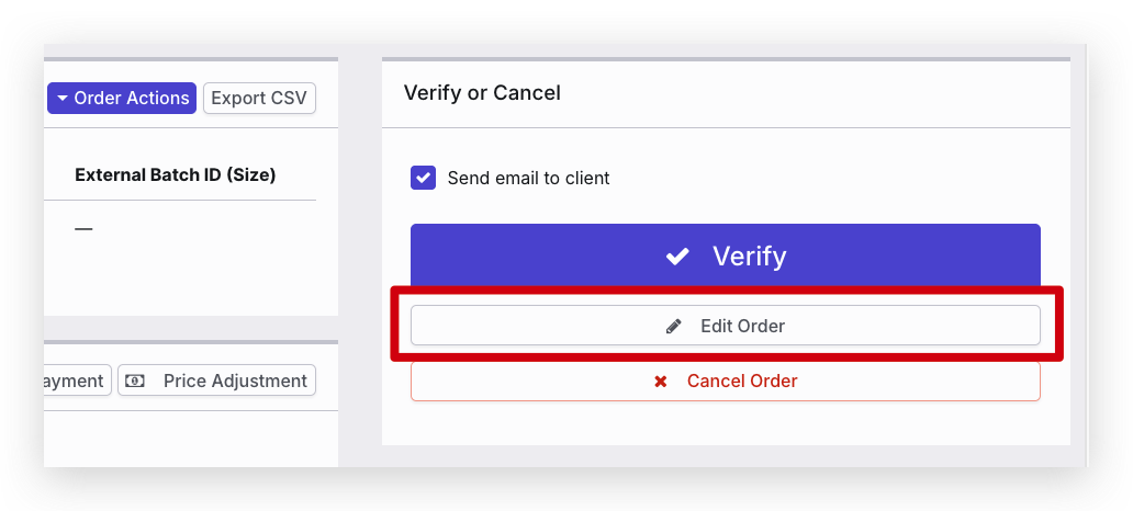 Under Verify, Complete or Cancel buttons, click Edit Order