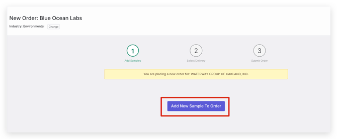 - Select Add New Sample To Order to begin adding samples to the order
